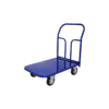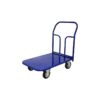 Каркас тележки изготовлен из металлических профильных труб. Платформа с закругленными краями. Настил выполнен из листовой стали. Борта отсутствуют, ручка одна.