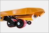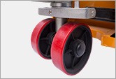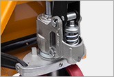 Для того чтобы опустить вилы, оператор пользуется рычажком, находящимся на ручке тележки. Для передвижения тележки достаточно перевести ручку в среднее положение. Рулевые колёса и подвильные ролики с лёгкостью доставят груз в нужное место.