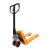 Вилы тележки выполнены из качественной толстолистовой стали с порошковой окраской, а опора передних сдвоенных колес изготовлена методом литья. Цельнолитой корпус масляного насоса, хромированный поршневой шток и стержень клапана исключительно надежны и рассчитаны на длительный срок службы. Защитный перепускной клапан срабатывает при превышении нагрузки на 20%, исключая повреждение гидроцилиндра.